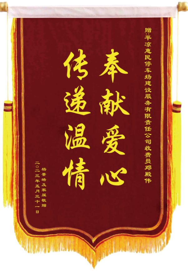 5月31日下午,一對(duì)老人和一位年輕的母親領(lǐng)著大約5歲的男孩為停車場(chǎng)公司送來一面錦旗,對(duì)停車收費(fèi)員鄧殿偉助力尋親之舉表達(dá)感激之情。
