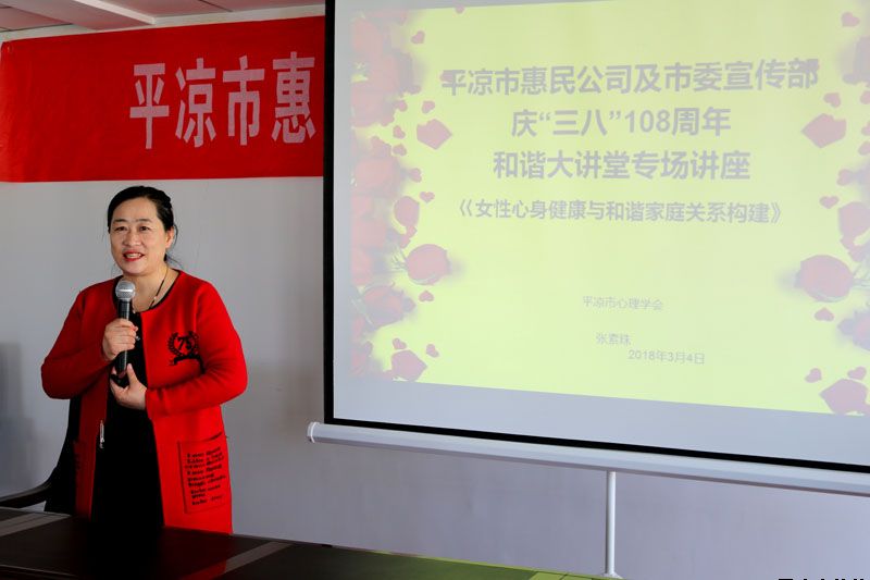 講座由平?jīng)鍪行睦韺W會會長、國家執(zhí)業(yè)醫(yī)師、國家二級心理咨詢師、EAP高級講師張素珠老師主講,張老師以“婦女心身健康與家庭及社會和諧”為主題,作了深入淺出,激情洋溢的講座,講座結合專業(yè)的學識和通俗的語言,系統(tǒng)講解了女性自出生到婚育各個成長階段的心理健康養(yǎng)護和相關心理問題矯正知識,深入分析了女性心理發(fā)展與家庭、社會的關系,結合現(xiàn)實案例解答了普通家庭生活中常見的心理和家庭關系問題。
