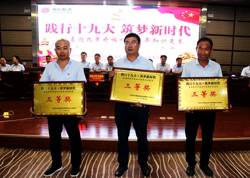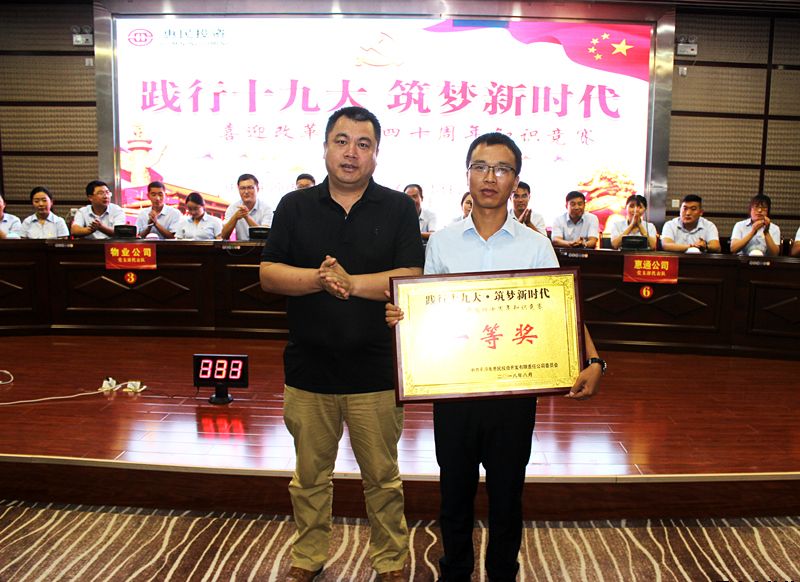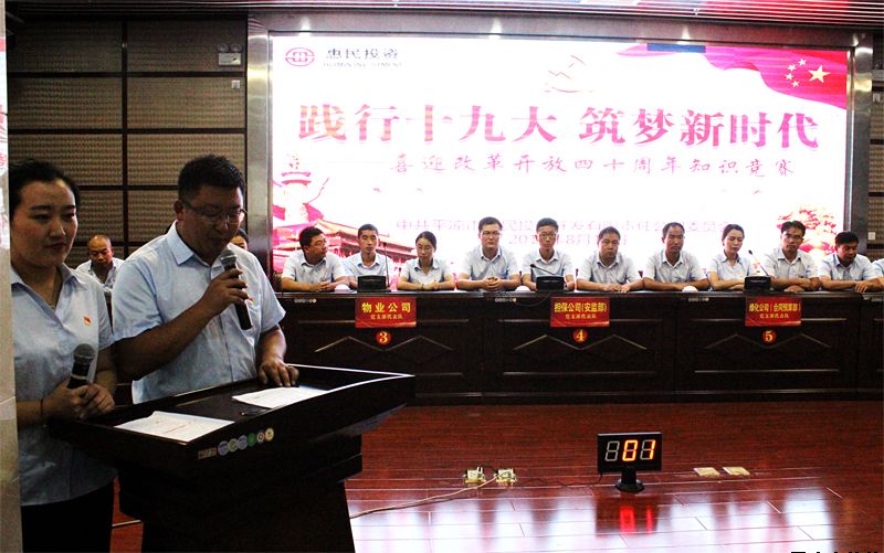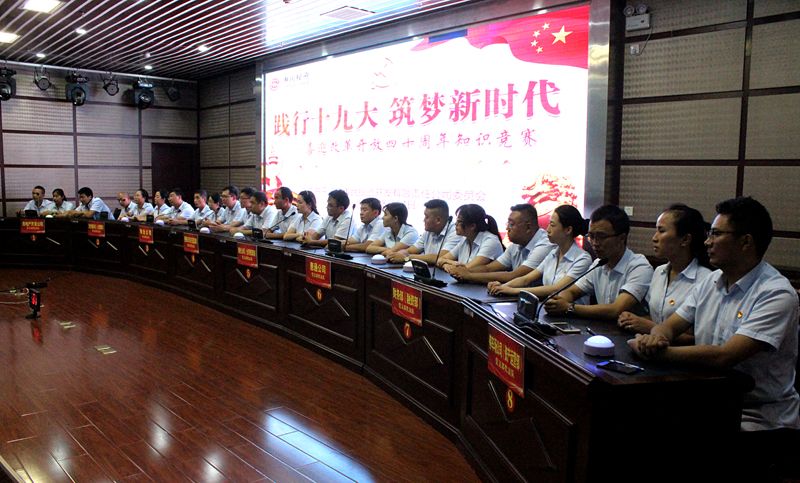 8月14日下午,惠民公司在工商聯(lián)大廈5樓會(huì)議室舉辦了“踐行十九大?筑夢(mèng)新時(shí)代”喜迎改革開(kāi)放四十周年知識(shí)競(jìng)賽活動(dòng)。公司黨委書(shū)記、董事長(zhǎng)唐常寧,副總經(jīng)理魏顯文、鄭忠軍、馬新平、柳振源,總工程師高健出席活動(dòng),公司中層以上管理人員及全體黨員,共計(jì)60余人參加活動(dòng)。