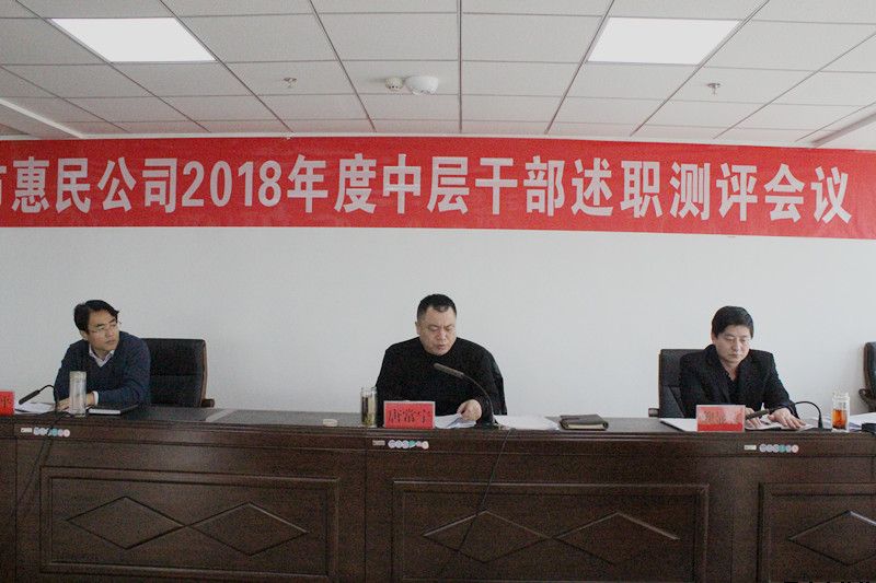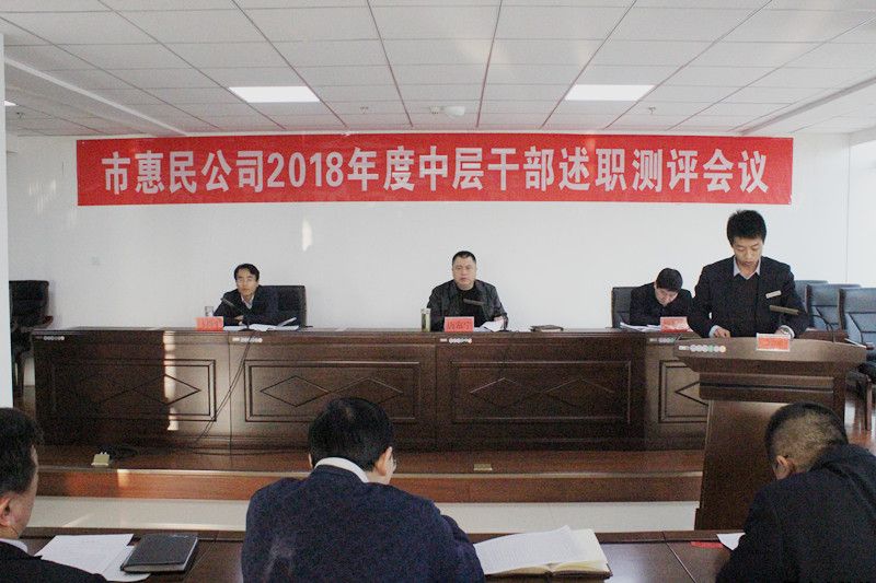 1月25日,市惠民公司召開(kāi)2018年度中層干部述職測(cè)評(píng)會(huì)議。會(huì)議由黨委書(shū)記、董事長(zhǎng)唐常寧主持,副總經(jīng)理魏顯文、馬新平及公司中層干部,共計(jì)28人參加會(huì)議。