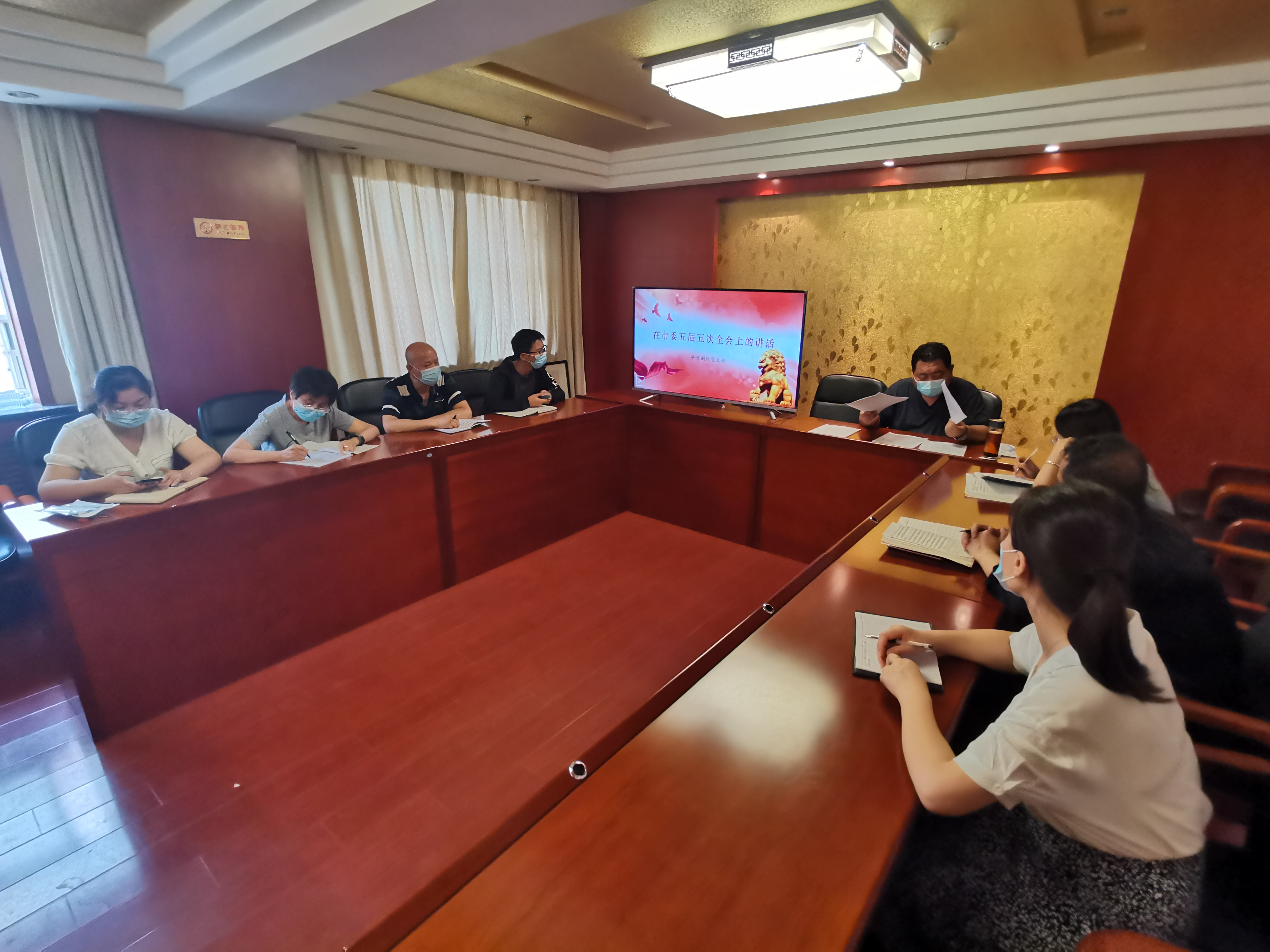 8月22日,平?jīng)鰟≡狐h支部組織召開黨員干部會議,傳達學(xué)習(xí)市委五屆五次全會精神。