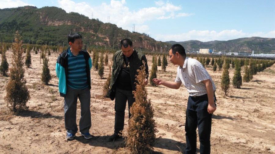 圖為公司領(lǐng)導(dǎo)督查鴨兒溝綠化苗木基地