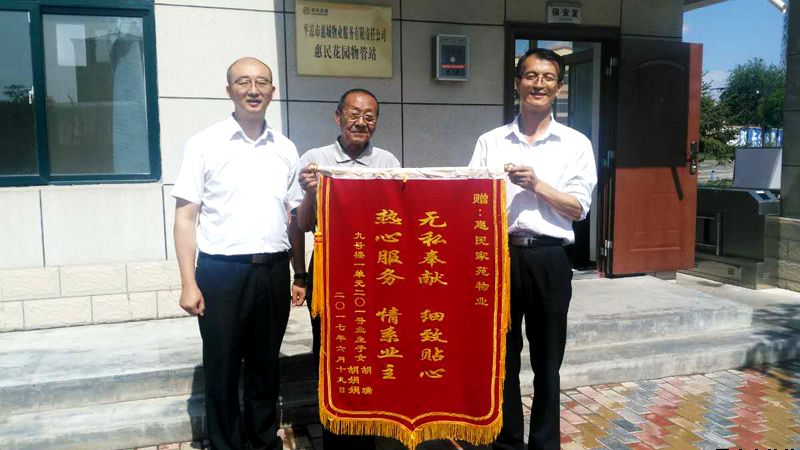 近日,惠民花園物管站工作人員正在門口忙著修剪草坪,一名年輕女士急匆匆地沖了進(jìn)來,把一面寫著“無私奉獻(xiàn)、細(xì)致貼心、熱心服務(wù)、情系業(yè)主”的錦旗放在了辦公桌上,嘴里不停的念叨,“多虧你們了,多虧你們了......”,物業(yè)站的工作人員一臉疑惑,經(jīng)過仔細(xì)詢問才知道,年輕女士是惠民花園9號樓1單元住戶胡青山大爺?shù)呐畠骸?/span>