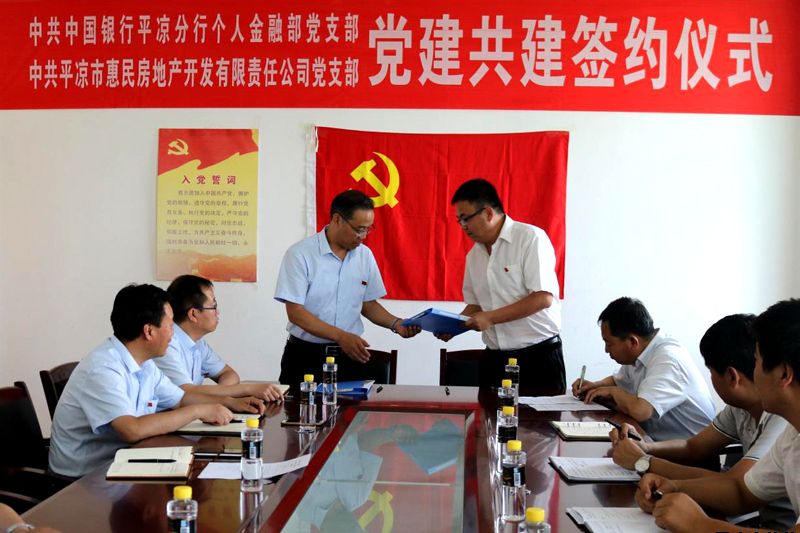 近日,中共平?jīng)鍪谢菝穹康禺a(chǎn)開發(fā)有限責(zé)任公司黨支部與中共中國(guó)銀行平?jīng)龇中袀€(gè)人金融部黨支部黨建共建簽約儀式在中國(guó)銀行平?jīng)龇中信e行?;菝裢顿Y公司副總經(jīng)理柳振源、中國(guó)銀行平?jīng)龇中屑o(jì)檢書記秦建鋼、副行長(zhǎng)楊震榮出席簽約儀式。