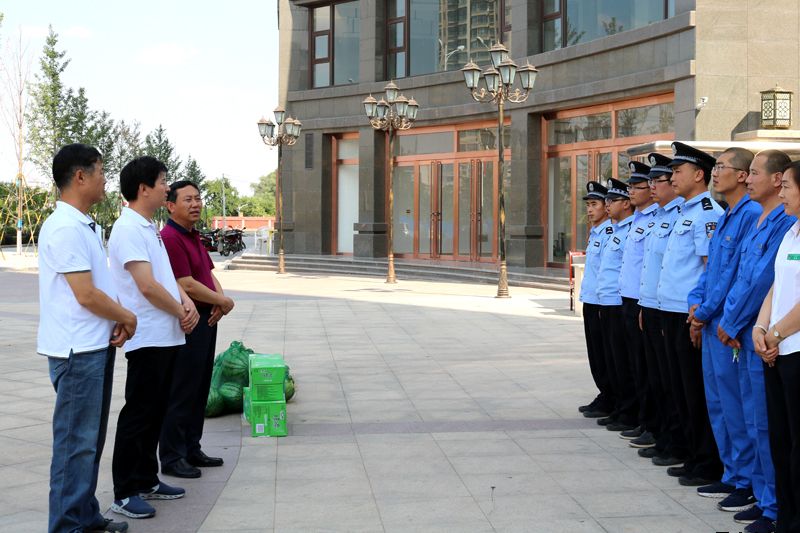 對(duì)于堅(jiān)守在公司一線崗位的基層員工,連續(xù)的高溫牽動(dòng)著公司領(lǐng)導(dǎo)的心,為將公司的關(guān)懷和慰問(wèn)及時(shí)傳遞給一線員工,7月12日下午,受公司黨委書記、董事長(zhǎng)馬千里委托,公司黨委副書記、總經(jīng)理唐常寧,副總經(jīng)理魏顯文、鄭忠軍、馬新平、柳振源,總工程師高健前往新北嘉園、惠民大廈施工現(xiàn)場(chǎng)和新城國(guó)際、惠民花園物業(yè)中心、柳湖路苗圃,向奮戰(zhàn)在一線的基層員工送去慰問(wèn),并將公司準(zhǔn)備的高溫慰問(wèn)品送到他們手中,讓員工們?cè)诹胰昭籽椎目崾钪懈惺艿揭唤z舒心的涼意。