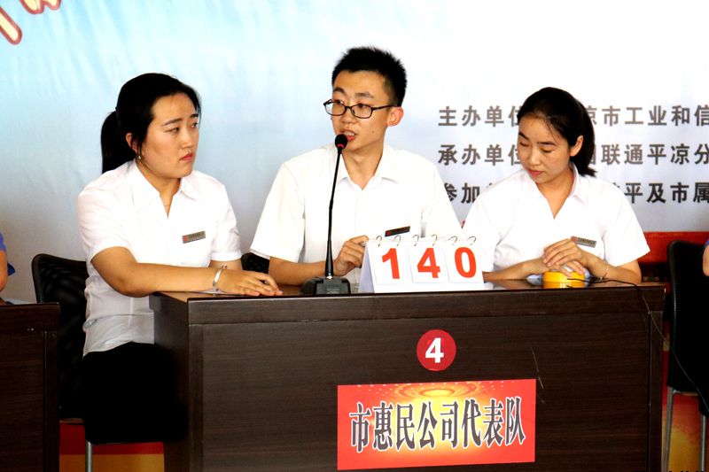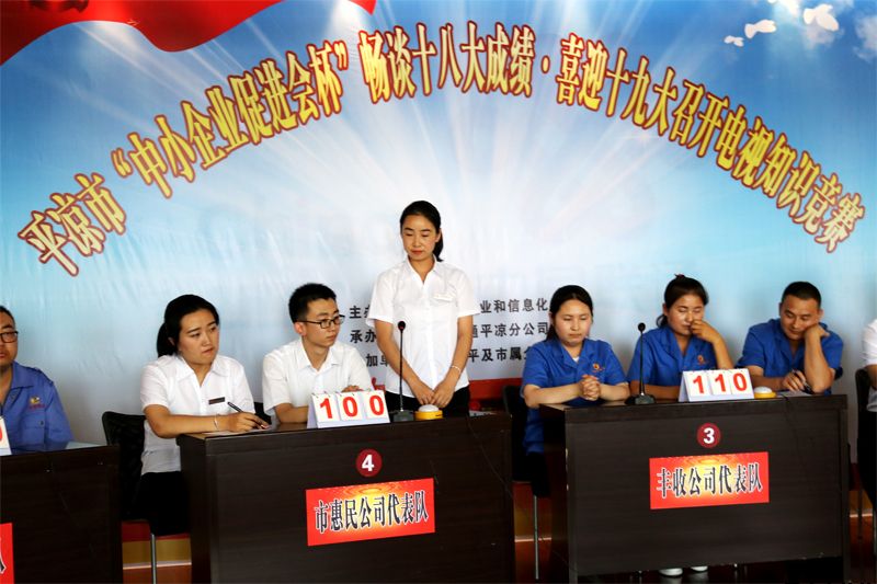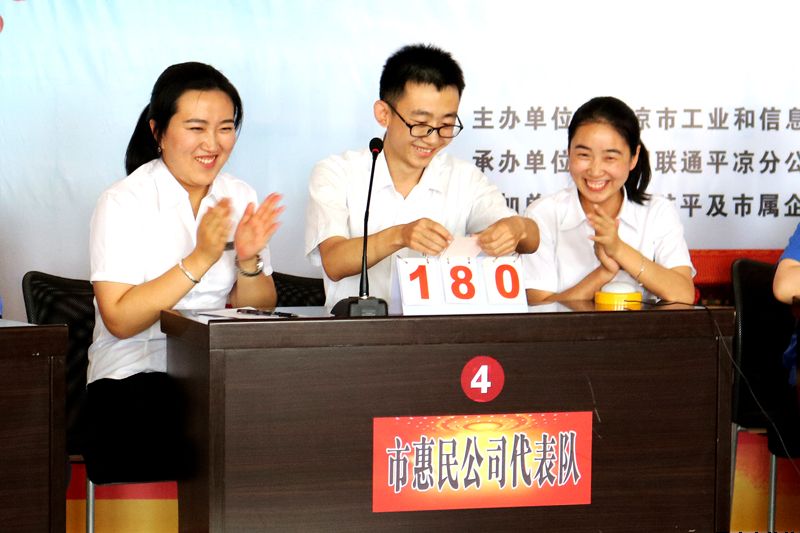 7月20日下午,平?jīng)鍪小爸行∑髽I(yè)促進(jìn)會(huì)杯”暢談十八大·喜迎十九大電視知識(shí)競(jìng)賽中省駐平及市屬企業(yè)賽區(qū)比賽在聯(lián)通公司會(huì)議室圓滿結(jié)束,代表我公司參賽的員工張石晶、劉婕、魏靜、孟靖洋冷靜應(yīng)戰(zhàn),配合默契,高水平發(fā)揮,最終以220分的好成績(jī)?nèi)〉弥惺●v平及市屬企業(yè)賽區(qū)第一名,榮獲賽區(qū)一等獎(jiǎng),順利進(jìn)入全市復(fù)賽。