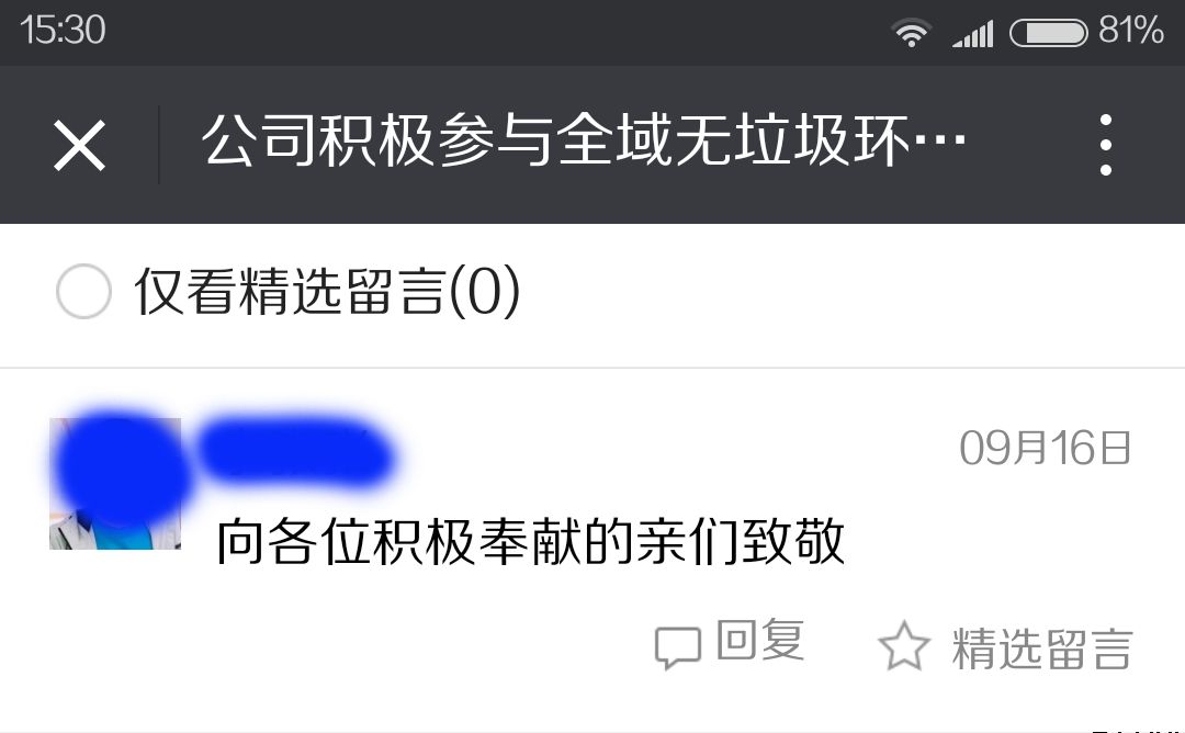 惠民公司全體員工無私貢獻,為城市綠色整潔所付出的善行義舉也被社會各界群眾所稱贊,紛紛點贊支持。有網(wǎng)友在筆者朋友圈留言:“惠民公司處處體現(xiàn)惠民平?jīng)鋈嗣瘛保€有網(wǎng)友在惠民公司微信公眾號留言:“向各位積極奉獻的親們致敬”。
