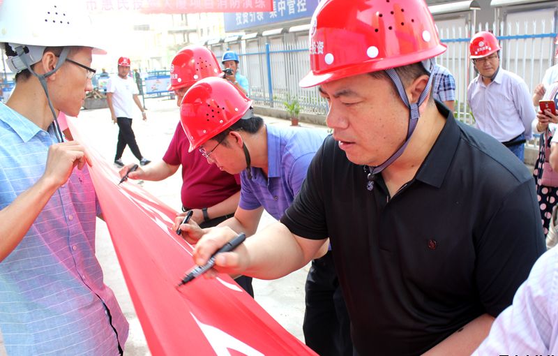 本次活動由公司副總經(jīng)理馬新平主持,房地產(chǎn)公司配合安監(jiān)部組織實施,通過安全生產(chǎn)活動宣誓、活動簽名、懸掛橫幅標(biāo)語、參觀宣傳展牌、觀摩消防應(yīng)急演練、觀摩項目建設(shè)工地等活動進(jìn)行開展。市建管局副局長田曉東對本次活動進(jìn)行點評并給予了肯定,公司黨委書記、董事長唐常寧作了重要講話。