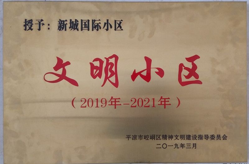 3月1日和3月21日,物業(yè)公司先后榮獲崆峒區(qū)“2018年度物業(yè)管理先進單位”稱號,所管轄的新城國際小區(qū)榮獲崆峒區(qū)“文明小區(qū)”稱號。