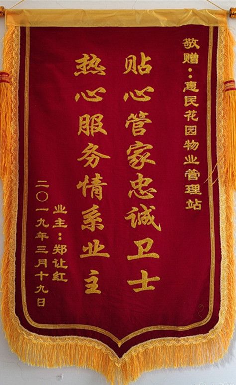收到錦旗是業(yè)主對物業(yè)工作的極大肯定,也意味著以后的工作更多了一份責(zé)任,物業(yè)將繼續(xù)全心全意為業(yè)主服務(wù),為業(yè)主當(dāng)好管家,為幸福小區(qū)而努力!