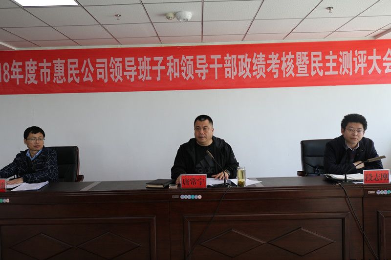 根據(jù)市委統(tǒng)一安排部署,5月8日,市委第二考核組對(duì)市惠民公司2018年度市管領(lǐng)導(dǎo)班子及領(lǐng)導(dǎo)干部工作政績(jī)、黨風(fēng)廉政建設(shè)等工作進(jìn)行考核。市委考核組成員、市委組織部檔案信息管理科科長(zhǎng)段志剛同志,市人社局主任科員趙中瑞同志出席述職大會(huì)并組織民主測(cè)評(píng)、個(gè)別談話等考核工作。市惠民公司黨委書記、董事長(zhǎng)唐常寧主持會(huì)議,代表班子和個(gè)人作述職報(bào)告。