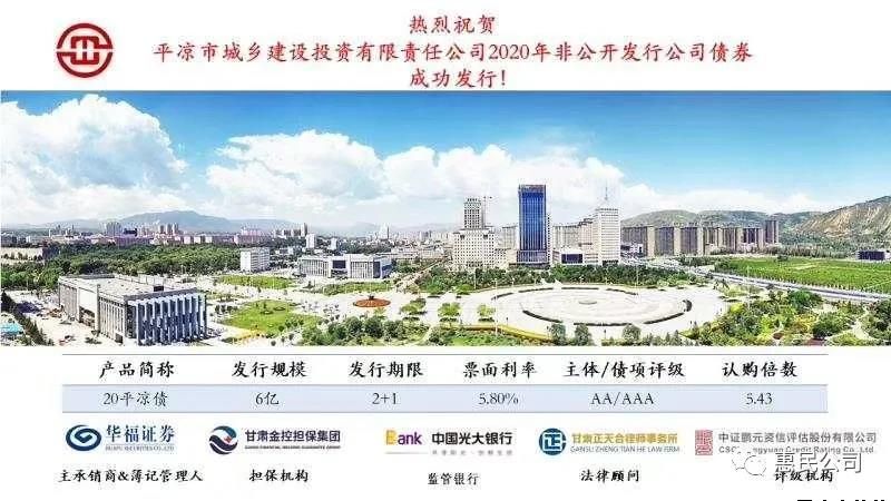 3月12日,平?jīng)鍪谐青l(xiāng)建設(shè)投資有限責(zé)任公司由華福證券承銷(xiāo)的6億元“20平?jīng)鰝背晒Πl(fā)行,發(fā)行利率5.80%?;I備近一年的債券發(fā)行工作終于塵埃落定,捷報(bào)傳來(lái),公司上下無(wú)不精神振奮,信心倍增!