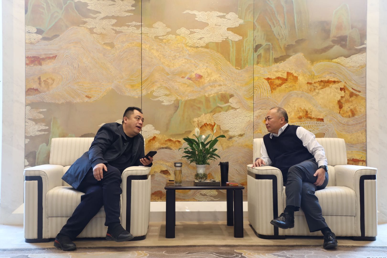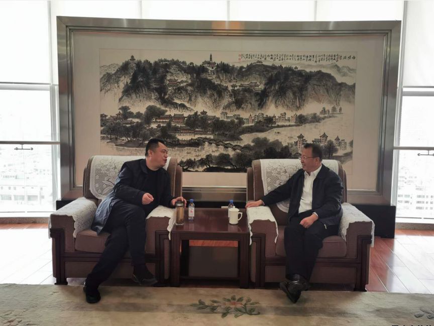 圖為唐常寧與中信銀行蘭州分行負(fù)責(zé)人曲嵩座談
