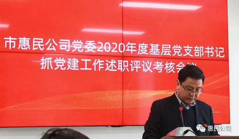 1月21日,市惠民公司黨委召開(kāi)2020年度基層黨支部書(shū)記抓黨建工作述職評(píng)議考核會(huì)議。會(huì)議由黨委書(shū)記、董事長(zhǎng)唐常寧主持,公司黨員領(lǐng)導(dǎo)班子成員,各黨支部書(shū)記,各部室、下屬公司主要負(fù)責(zé)人及黨務(wù)工作人員參加會(huì)議。