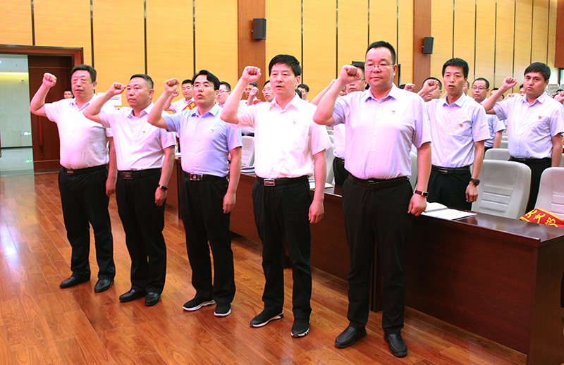 會(huì)上,五名員工光榮加入了中國(guó)共產(chǎn)黨,黨委委員、副總經(jīng)理鄭忠軍帶領(lǐng)新黨員進(jìn)行入黨宣誓,全體黨員重溫入黨誓詞;副總經(jīng)理馬新平宣讀了公司黨委《關(guān)于接收劉剛剛等五名同志為中共預(yù)備黨員的通知》及公司黨委《關(guān)于“兩優(yōu)一先”表彰的決定》,表彰了3個(gè)先進(jìn)黨支部、11名優(yōu)秀共產(chǎn)黨員以及3名優(yōu)秀黨務(wù)工作者。