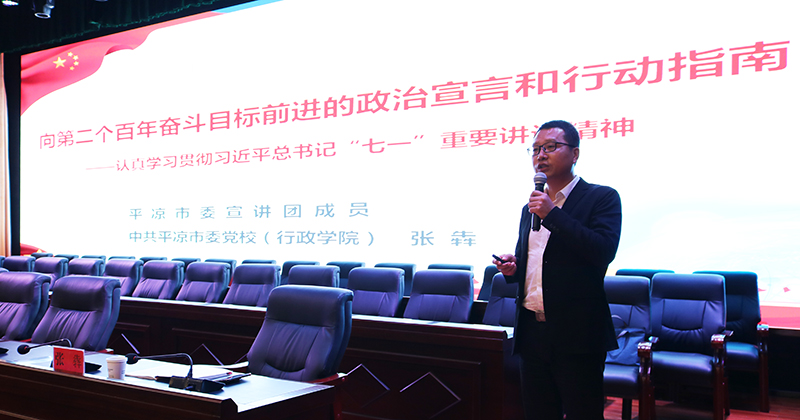 下午,邀請(qǐng)市委黨校(行政學(xué)院)辦公室副主任、黨史黨建專(zhuān)業(yè)副教授張犇作了題為《向第二個(gè)百年奮斗目標(biāo)前進(jìn)的政治宣言和行動(dòng)指南》的宣講輔導(dǎo)。張犇從充分認(rèn)識(shí)“七一”重要講話的重大意義、準(zhǔn)確把握“七一”重要講話的豐富內(nèi)涵、全力推動(dòng)“七一”重要講話精神落地生根三個(gè)方面,對(duì)習(xí)近平總書(shū)記“七一”重要講話精神進(jìn)行了詳細(xì)解讀。
