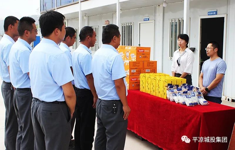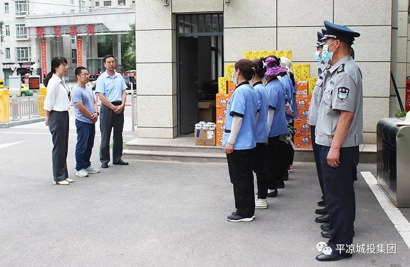 為做好高溫酷暑期間的防暑降溫工作,進(jìn)一步傳遞集團(tuán)公司對(duì)一線職工的關(guān)愛,7月26日,受公司黨委委員、總經(jīng)理胡紅訓(xùn)委托,公司副總經(jīng)理王徐周、鄭忠軍、馬新平、王彥彥分組帶領(lǐng)黨委辦(辦公室)、工會(huì)工作人員,前往房產(chǎn)公司涇河流域治理、崇文書苑二期建設(shè)項(xiàng)目工地,物業(yè)公司所屬市委、市政府、市中級(jí)法院、區(qū)法院、惠民大廈、御景華府物業(yè)服務(wù)中心,停車場公司封閉停車場,向奮戰(zhàn)在一線的96名工作人員送去慰問,并將公司準(zhǔn)備的慰問品送到他們手中。