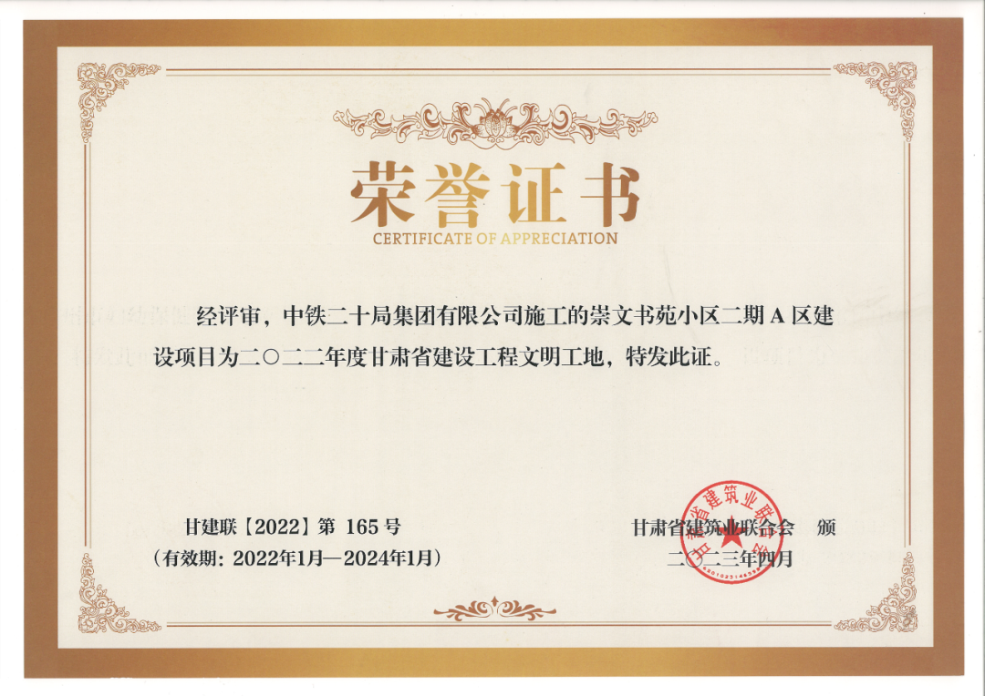 近期,集團(tuán)公司下屬房產(chǎn)公司開發(fā)建設(shè)的崇文書苑二期建設(shè)項(xiàng)目榮獲2022年度省級(jí)文明工地榮譽(yù)稱號(hào)。