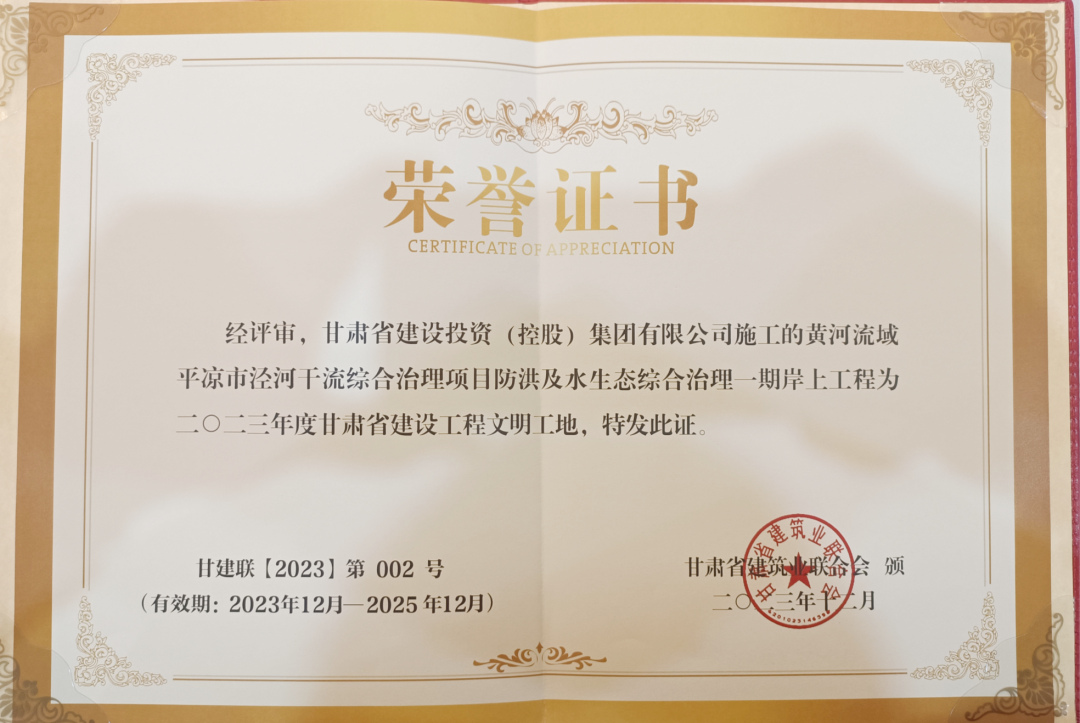 近日,由平?jīng)龀峭都瘓F(tuán)實(shí)施的黃河流域平?jīng)鍪袥芎痈闪骶C合治理項(xiàng)目防洪及水生態(tài)綜合治理一期岸上工程,榮獲 2023 年度甘肅省建設(shè)工程文明工地榮譽(yù)稱號。這是該項(xiàng)目獲得中國海綿城市十年成就展項(xiàng)目典范之后,榮獲的又一殊榮。