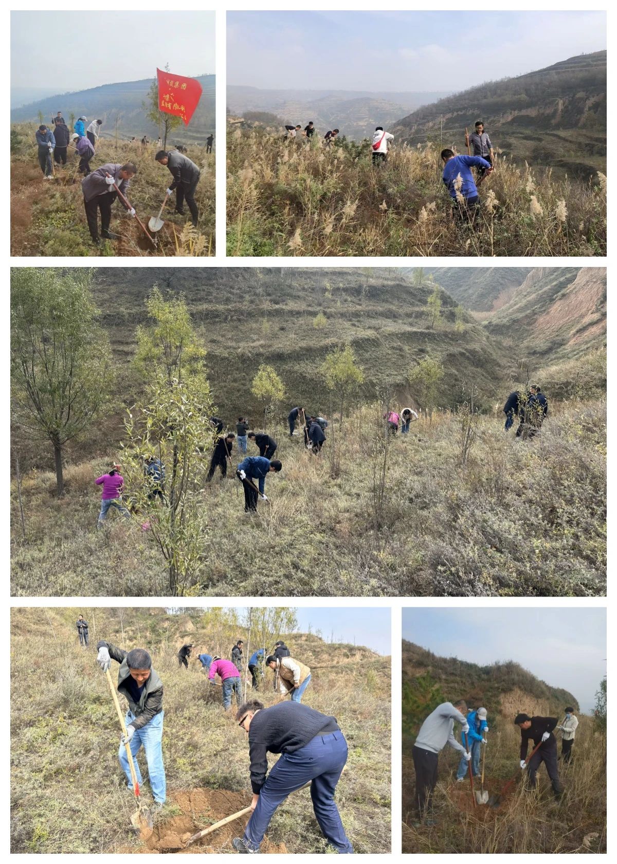 霜天秋意濃,植樹正當(dāng)時。10月29日,集團(tuán)公司組織100余名干部職工,前往崆峒區(qū)香蓮鄉(xiāng)高河村南山開展義務(wù)植樹活動。