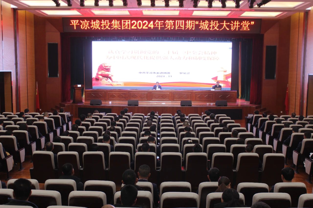 11月30日,集團(tuán)公司舉辦2024年第四期“城投大講堂”。邀請中共平?jīng)鍪形v師團(tuán)副團(tuán)長羅常靈同志圍繞《認(rèn)真學(xué)習(xí)貫徹黨的二十屆三中全會精神,為中國式現(xiàn)代化提供強(qiáng)大動力和制度保障》作專題宣講。集團(tuán)公司領(lǐng)導(dǎo)班子成員,各部門、下屬各二級公司班子成員、三級公司負(fù)責(zé)人,全體黨員及職工代表共計240余人聆聽了大講堂。