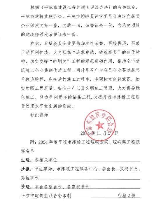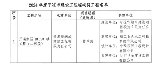 11月29日,由城建投公司施工建設(shè)的興瑞家園1#2#樓二標(biāo)段工程,榮獲2024年度平?jīng)鍪薪ㄖこ獭搬轻吉劇薄?/span>