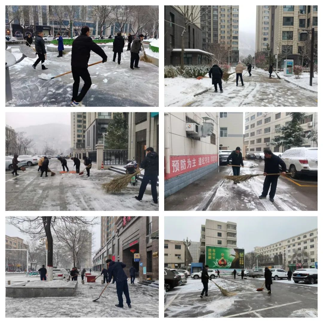 各經(jīng)營(yíng)服務(wù)單位身先士卒,不畏嚴(yán)寒,頂著風(fēng)雪,利用手中的雪鏟、鐵锨、掃帚等工具,互相配合,分工合作,熱火朝天的勞動(dòng)場(chǎng)面讓寒冷的天氣顯得暖意濃濃。在群眾出行前,已將區(qū)域主要道路和人行道積雪清掃干凈,用實(shí)際行動(dòng)驅(qū)散雪天嚴(yán)寒,為群眾清掃出一條“安全路”,開(kāi)辟出一條“暢通路”。