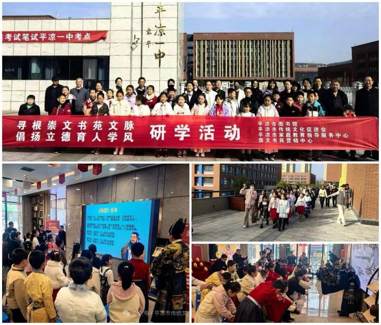 11月8日,房產(chǎn)公司聯(lián)合市圖書館、市傳統(tǒng)文化促進(jìn)會、市家庭教育指導(dǎo)服務(wù)中心,成功舉辦“尋根崇文書苑文脈,倡揚(yáng)立德育人學(xué)風(fēng)”主題研學(xué)活動。20多個(gè)家庭受邀走進(jìn)百年名校平?jīng)鲆恢?,沉浸式感受傳統(tǒng)文化的深厚魅力。
