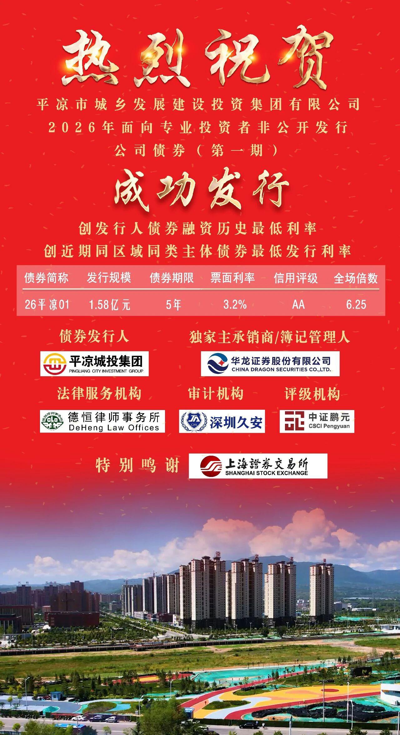 3月12日,集團(tuán)公司2026年度首只公司債券在上海證券交易所順利發(fā)行。本期債券由華龍證券擔(dān)任承銷商,發(fā)行規(guī)模1.58億元,期限5年,發(fā)行利率3.2%。