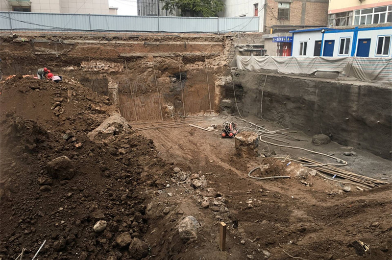 平?jīng)鲑e館立體停車庫項目建設(shè)自開工以來,工程進度按照總計劃進度正常進行,目前已累計完成工程量130萬元。至9月18日已完成樁基檢測;南側(cè)AB軸±0.00部分已完成地梁承臺基礎(chǔ)開挖及混凝土墊層施工,目前正在進行磚模砌筑,計劃9月底前完成承臺、地梁及擋土墻的施工;北側(cè)CDEF軸已完成基坑的開挖及北側(cè)邊坡的土釘墻支護,西側(cè)邊坡正在進行噴錨支護的腳手架搭設(shè),計劃在9月底前完成噴錨支護,10月中旬具備設(shè)備進場安裝條件。