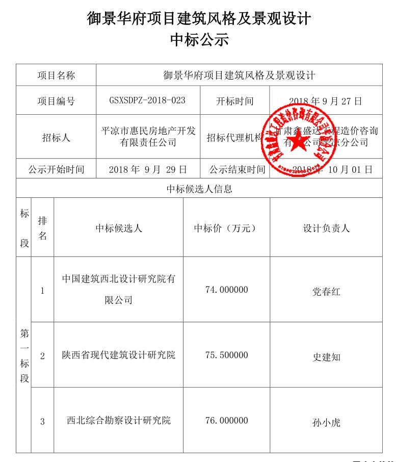 御景華府項(xiàng)目建筑風(fēng)格及景觀設(shè)計(jì)中標(biāo)公示