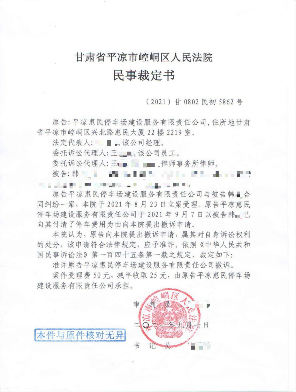 截止2021年9月底我公司向崆峒區(qū)人民法院遞交了第一批道路停車欠費(fèi)車輛的訴訟申請。經(jīng)崆峒區(qū)人民法院速裁,所有涉訴車輛欠費(fèi)已全部追回。