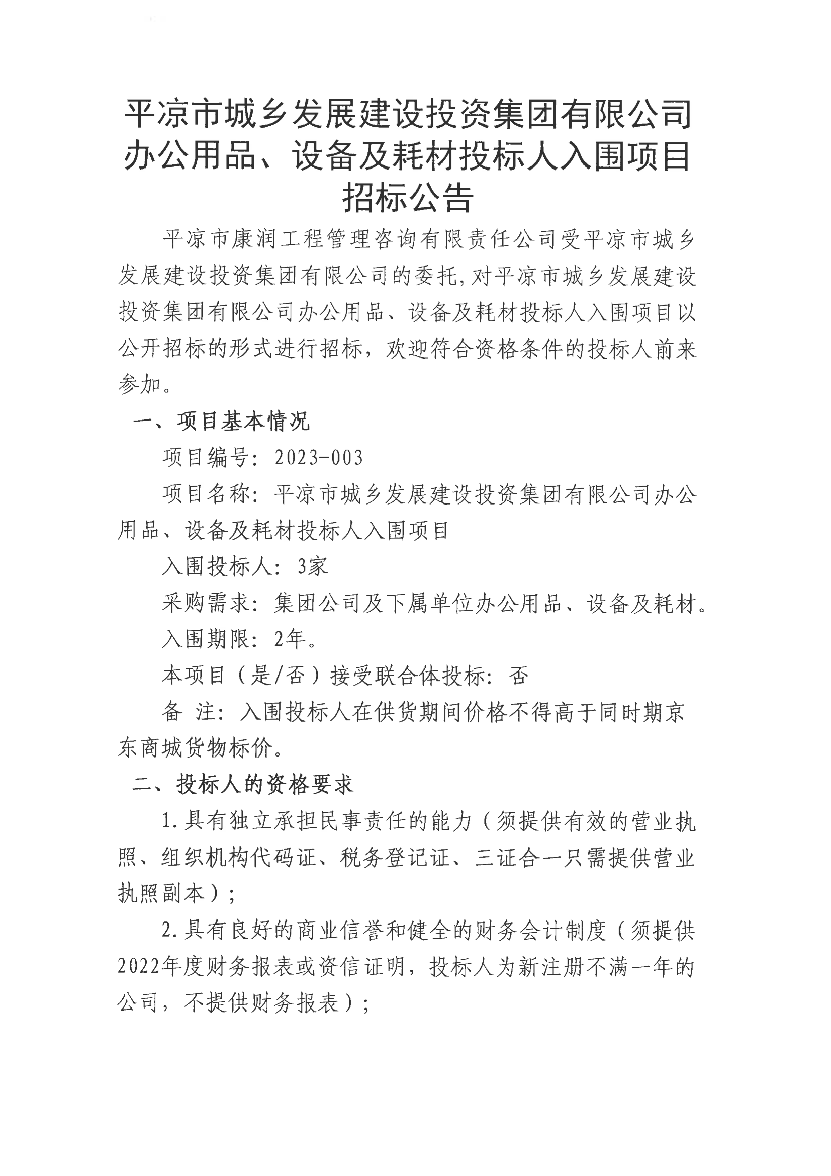 辦公用品、設(shè)備及耗材投標人入圍項目招標公告