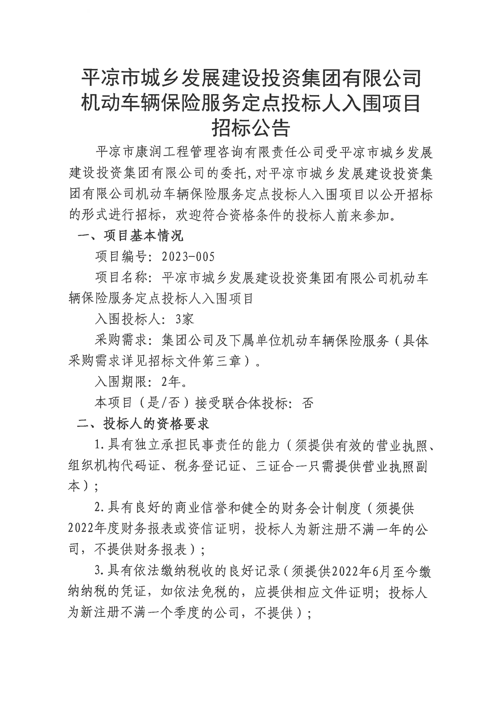 機(jī)動(dòng)車輛保險(xiǎn)服務(wù)定點(diǎn)投標(biāo)人入圍項(xiàng)目招標(biāo)公告