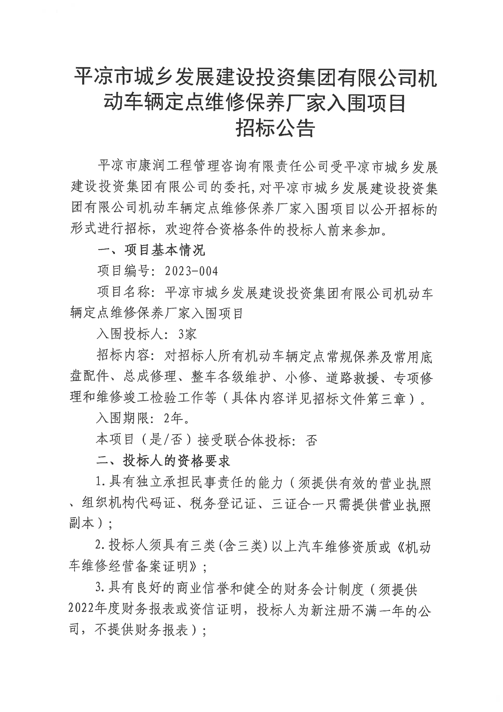 機(jī)動(dòng)車輛定點(diǎn)維修保養(yǎng)廠家入圍項(xiàng)目招標(biāo)公告